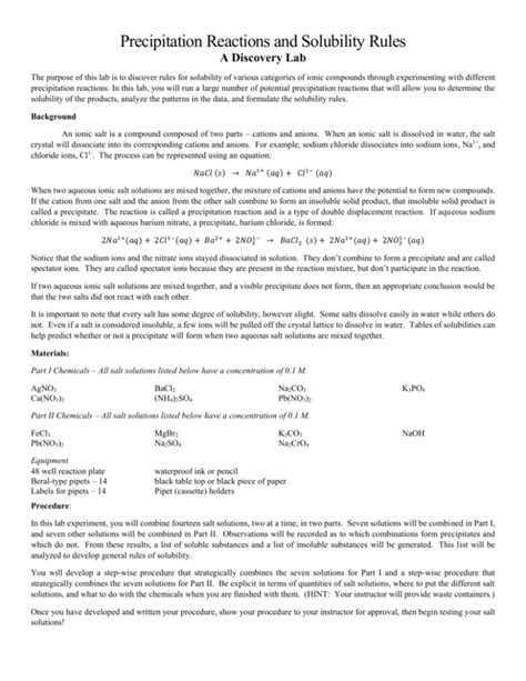 Read Online Precipitation Reactions Solubility Rules Lab Answers Kindle Editon